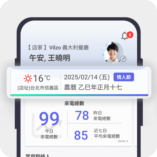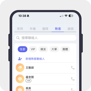 自動整理常用聯絡人,依據店家需求選用標籤分類。讓來電一目了然,熟客一秒識別,提供專屬又精準的服務。