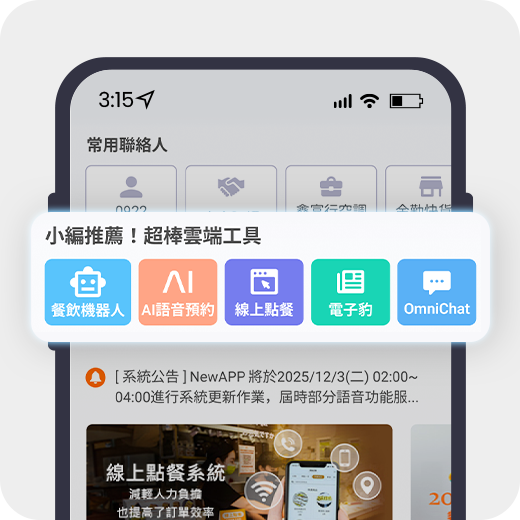 包含AI智慧點餐系統、行銷專用的電子豹等,多樣化的雲端工具將快速幫助店家經營。